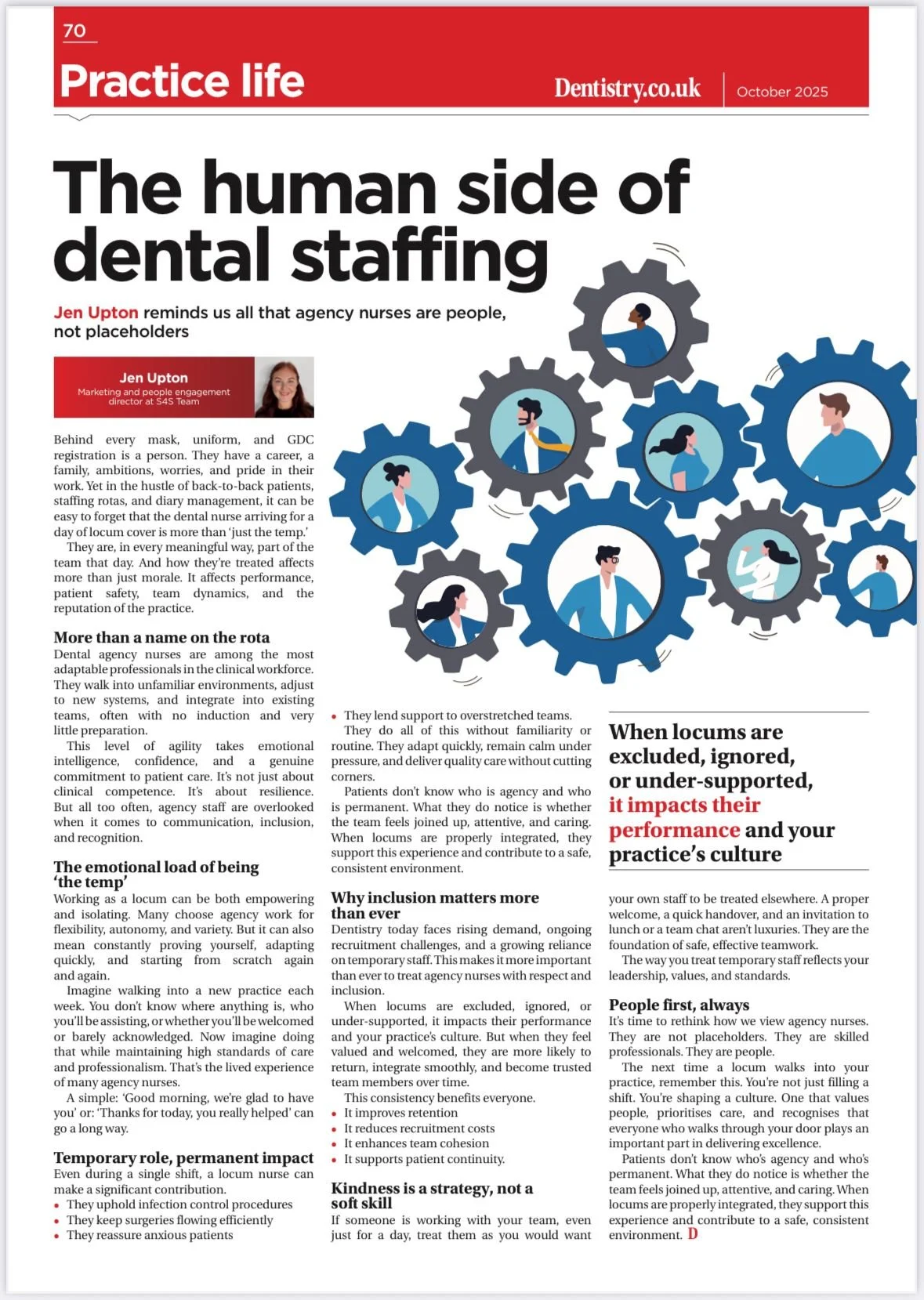 We’re proud that this article, written by our Marketing and People Engagement Director Jen Upton, was recently published in Dentistry Magazine. In it, Jen explores the human side of agency nursing and the importance of inclusion, respect, and recognition within dental teams.